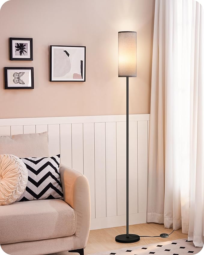 Dimmable Gray Floor Lamp for Living Room with Remote and Foot Switch, Corner Floor Lamp for Bedroom, Modern Standing Tall Lamp, 10W 900LM Bulb Included, 3000K-6500K, Linen Shade, FCC Listed H06LD05W1