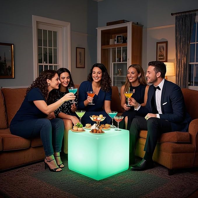 Mr.Go 20-inch LED Lighted Cube Table, Large LED Cube Chair Light, 16 RGB Colors Glowing Cube Seat w/Remote - Rechargeable - Waterproof - Home Outdoor Patio Pool Bar Stage Party Lighting Decoration
