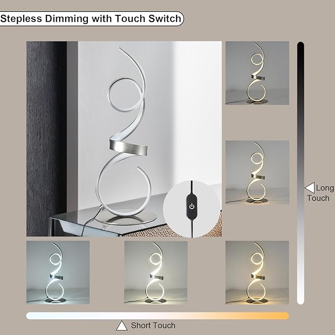 20W 2700LM 3 Colors Dimmable LED Art Table Lamp 21.4 Inch with Touch Switch for Living Room,Bedroom (Sand Nickel(Remote))