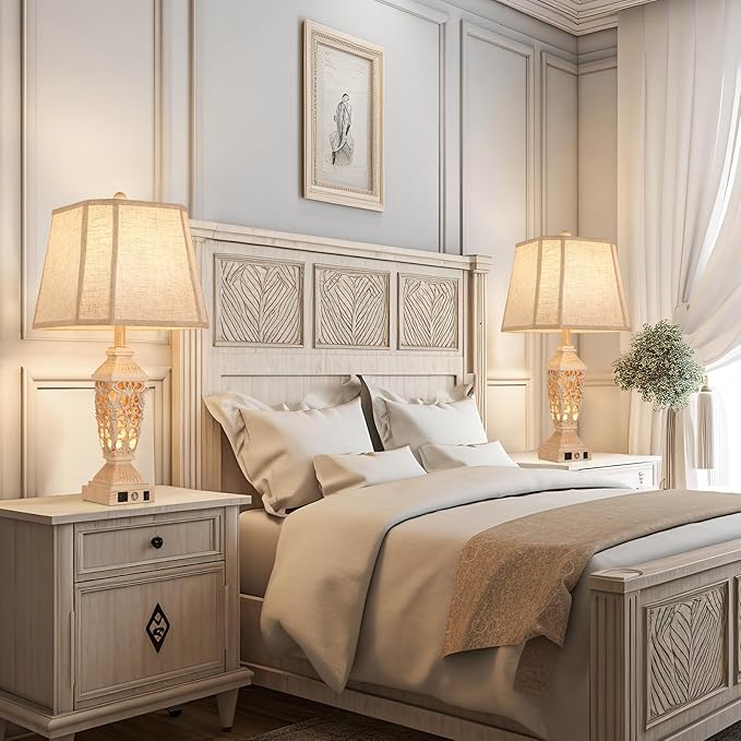 AIDENOEY Farmhouses Table Lamp with USB & USB-C Charging Ports, 3-Color Dimmable & Stepless Bottom Dimming, Touch Control & Switch, Vintage Bedside Lamp for Bedroom Living Room Office,(27.5" high)