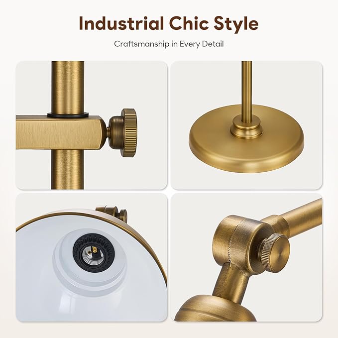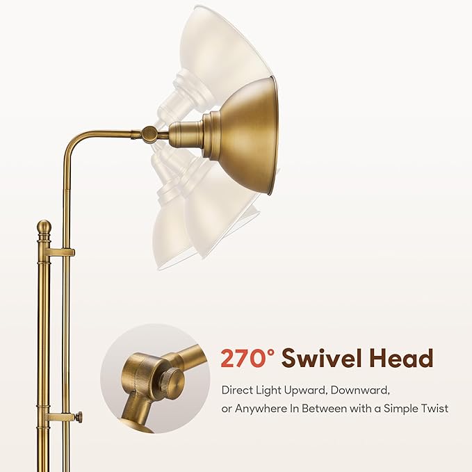 VONLUCE Floor Lamp for Living Room, 65" Industrial Brass Floor Lamp Adjustable Height & Head Vintage Metal Standing Reading Pole Lamp for Bedroom, Office, Farmhouse