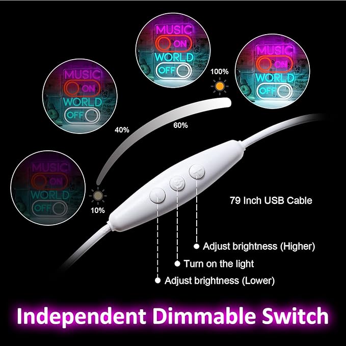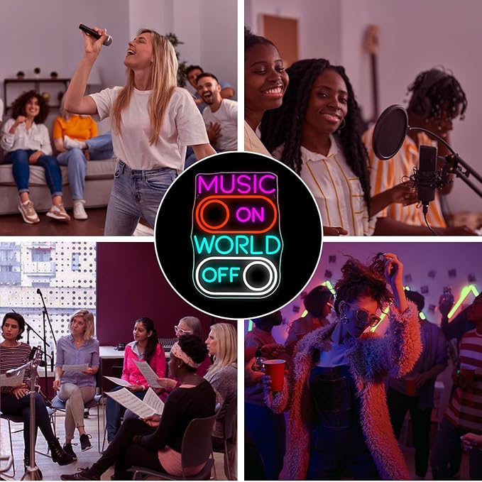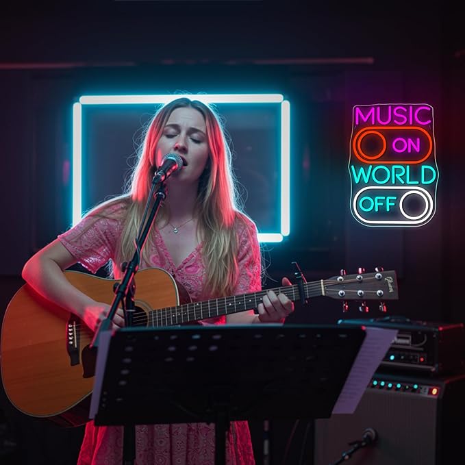 Horseneon Music World Neon Sign LED Neon Lights for Wall Decor Neon Sign Light up Sign for Music Studio, Bar, Club, Party, or Home decor gift for sing lovers