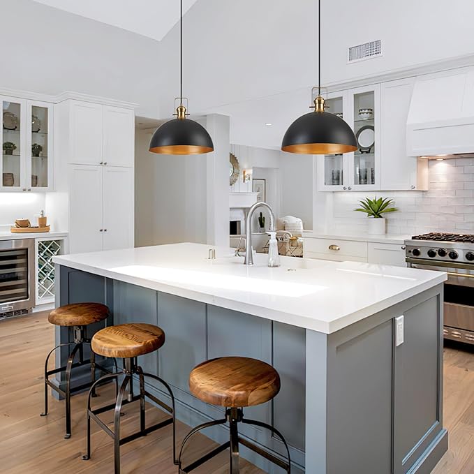 18 Inch Large Pendant Lights for Kitchen Island Matte Blacks Farmhouse Pendant Light fixtures Adjustable Height Dome Hanging Light for Dinning Room Bedroom Hallway,1 Pack