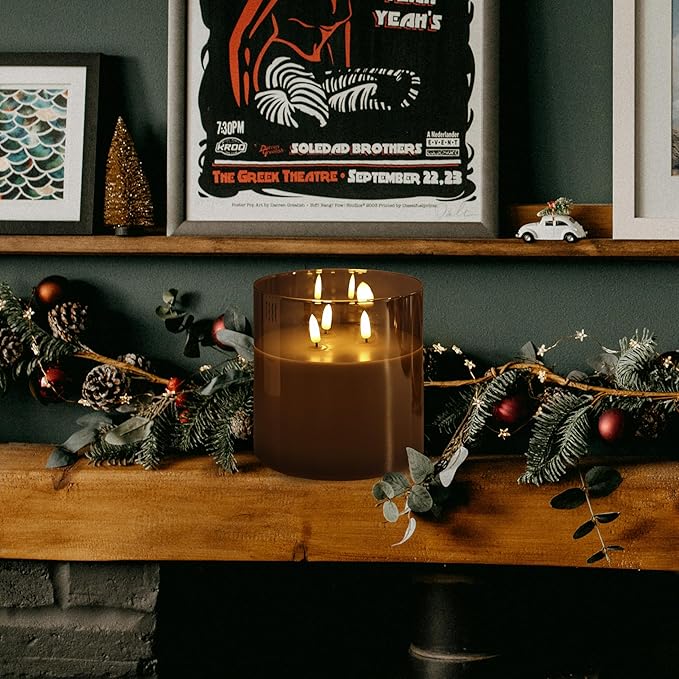 NICEME Extra Large 3 Wick Battery Operated Candle, 6"x6" Big Clear Glass Flameless Candles with Remote, Real Wax Flickering Led Pillar Fake Giant Candle for Wedding Party Holiday Home Decor, Grey