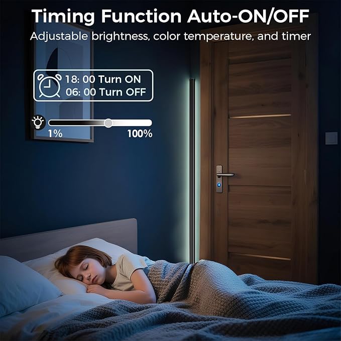 2PCS RGB Corner Floor Lamp, 60 Inch Bright Standing Lamps for Bedroom with APP and Remote Modern Floor Lamp Color Changing Ambience Light with Music Sync and 16 Million Colors