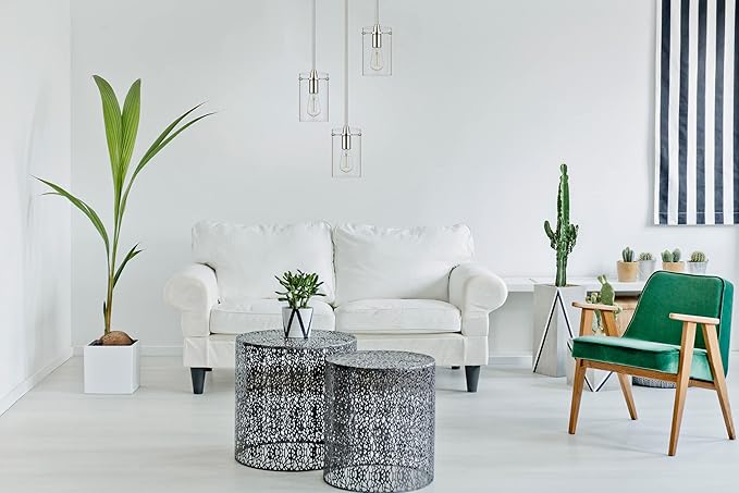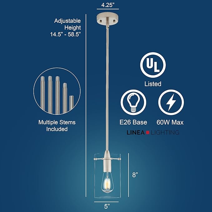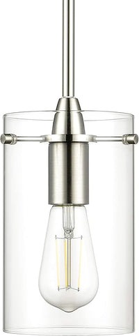 Brushed Nickel Pendant Lights Kitchen Island - Medium Clear Glass Pendant Light Fixture