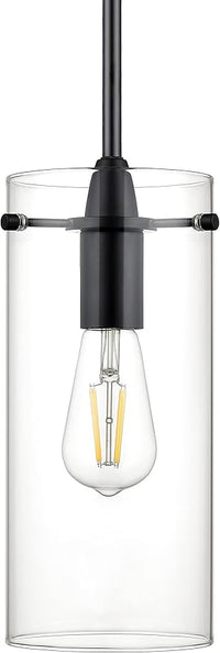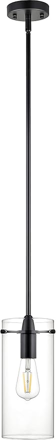 COMPATIBLE WITH MOST STANDARD MEDIUM BASE BULBS - This matte black kitchen pendant light fixture comes with medium clear glass shade that has a diameter of 4.87" and a height of 11"