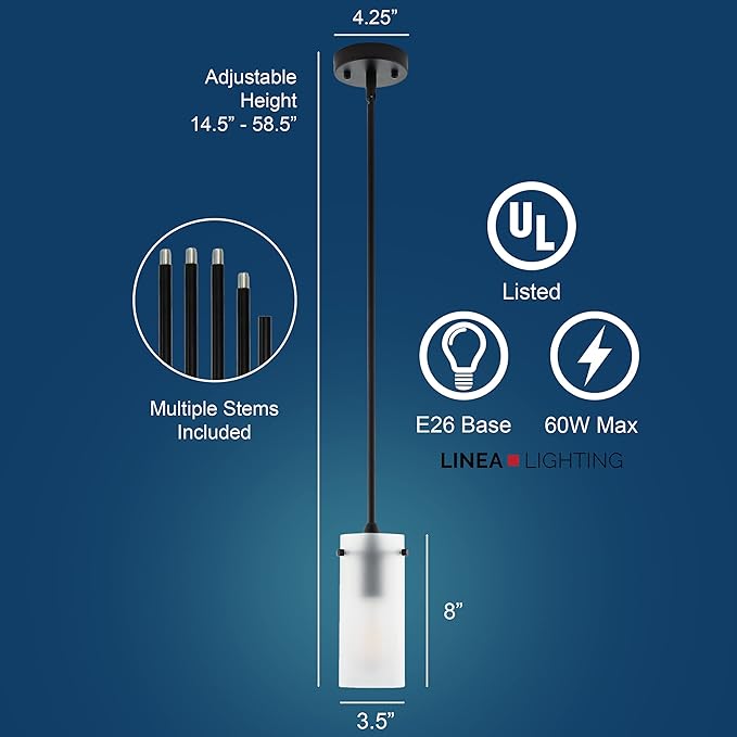 Linea di Liara Effimero Modern Matte Black Pendant Light Fixtures Over Kitchen Island Sink Lighting Ceiling Hanging Farmhouse Mini Metal Industrial Pendant Lighting Small Frosted Glass Shade
