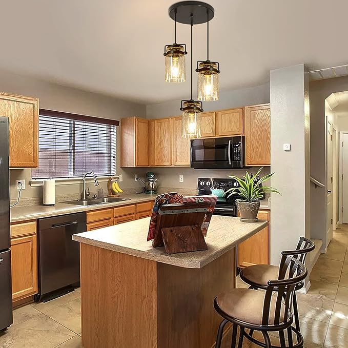 Kitchen Pendant Lighting Over Island 3 Pendant Lights Black Pendant Lighting Adjustable Farmhouse Ceiling Light for Kitchen Island Dining Room Bedroom Living Room