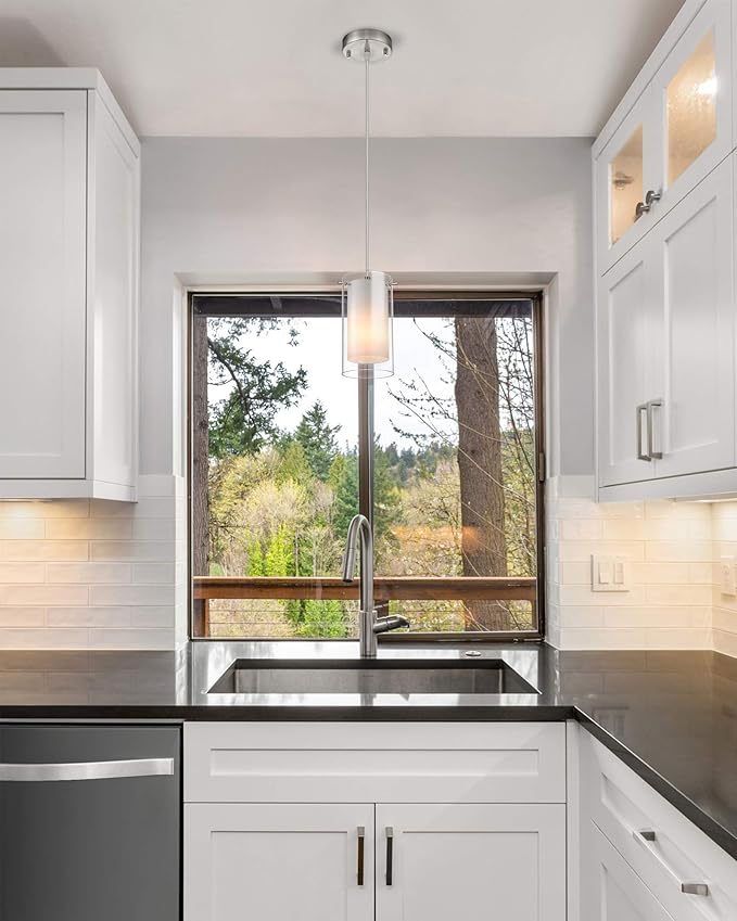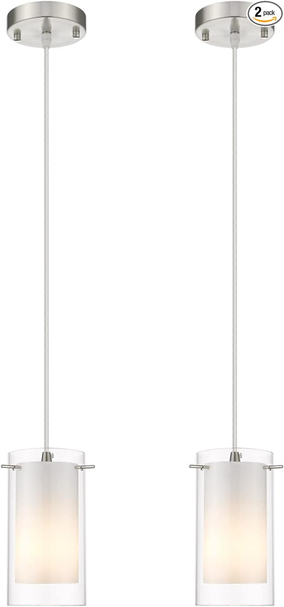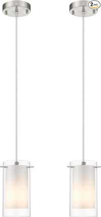 Modern Glass Pendant Light 2 Pack, Adjustable Hanging Pendant Lighting Kitchen Lights Island Dining Room Bathroom Bar, Brushed Nickel Finish
