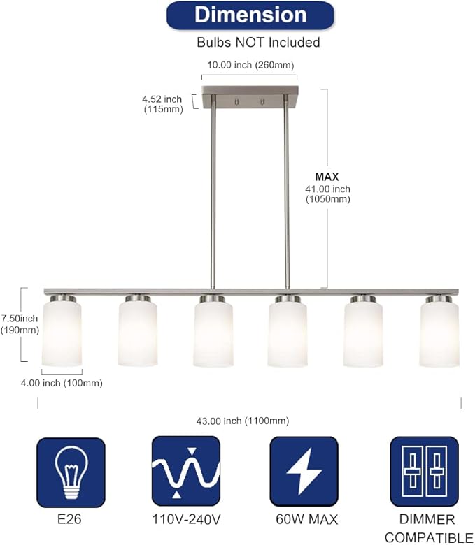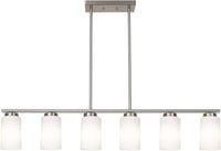 6-Lights Farmhouse Pendant Light Fixture Kitchen Island Lights with Opal White Glass Shade, Hanging Ceiling Light in Brushes Nickel for Dining Room Home Lighting