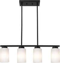 Farmhouse Dining Room Pendant Light Fixtures in Black Finish, 4-Lights Island Lighting with Opal White Glass Shades for Kitchen