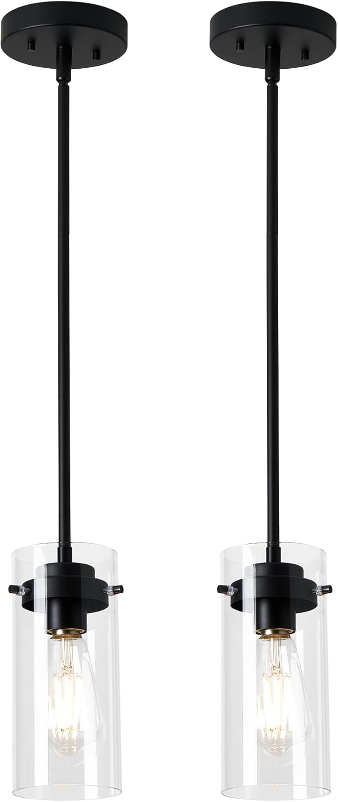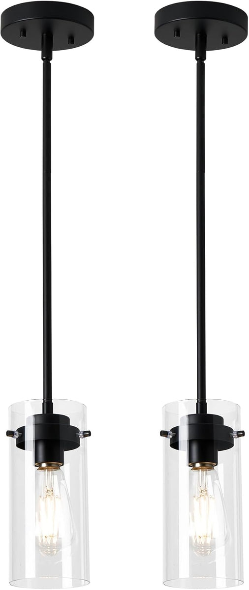 EAPUDUN Pendant Lights (2 Packs), Hanging Lights Fixtures, Clear Glass Shade Kitchen Lighting, Matte Black Farmhouse Kitchen Dining Table Ceiling Lights -PDA1353-B-MBK