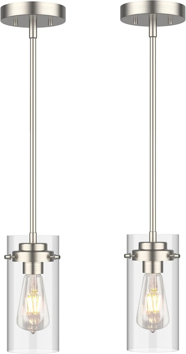 EAPUDUN Pendant Light (2 Packs), Kitchen Lights Ceiling Hanging, Kitchen Light Fixtures Brushed Nickel Finish, Farmhouse Pendant Lighting for Kitchen Island Room-PDA1353-B-BNK