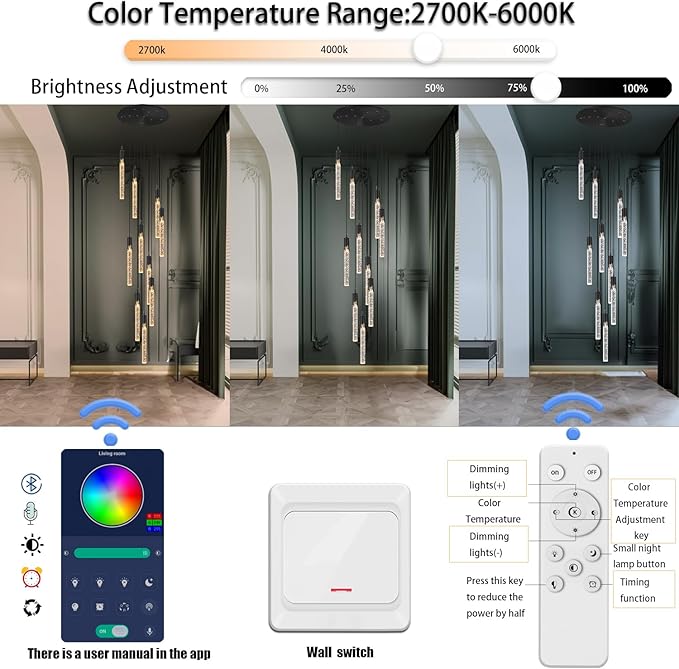 Flashing God Modern LED Chandelier, 10 Lights Black Dimmable Pendant Light with Remote High Ceiling Chandelier for Staircase Living Room Hallway Foyer