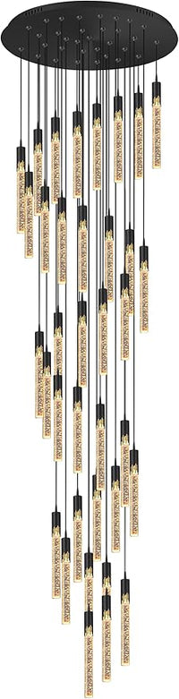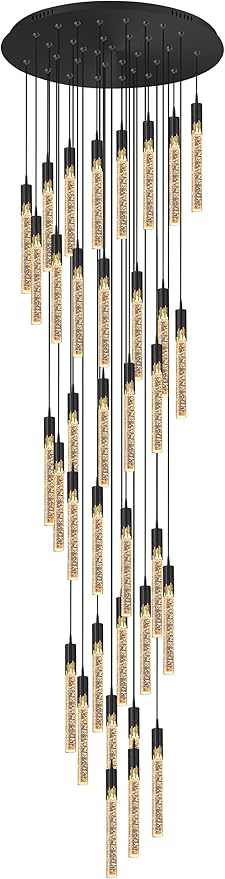 Flashing God Long Chandeliers for High Ceiling Black Bubble Crystal Chandelier Large Foyer Entrance Chandeliers for High Ceiling Big Crystal Chandelier LED Dimmable 2700K-6000K