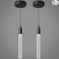 Modern Kitchen Island Pendant Light Dimmable LED Black Finish Mini Crystal Pendant Lighting Bedroom Bedside Table Small Pendant Lights(2-Pack)