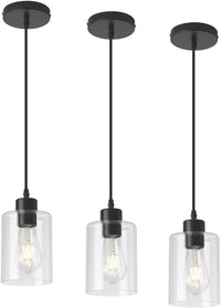 Modern Black Farmhouse Clear Glass Cylinder Pendant Light Fixture,Mini Pendant Lighting for Kitchen Island Decor - 4.75 Inch Shade, 2-58 Inch Cord (Black 3 Pack)