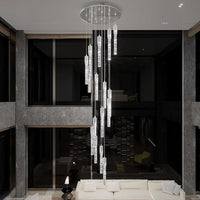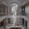 Flashing God 11feet Long Staircase Chandelier Modern Silver 16-Lights Transparent Crystal with Bubble Pendant Light High Ceiling Chandelier Dimmable 2700K-6000K Villa Entrance Foyer Lighting