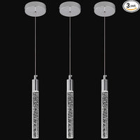 Modern Kitchen Island Pendant Light Dimmable LED Chrome Finish Mini Crystal Pendant Lighting Bedroom Bedside Table Small Pendant Lights(3-Pack)