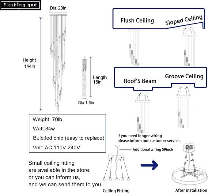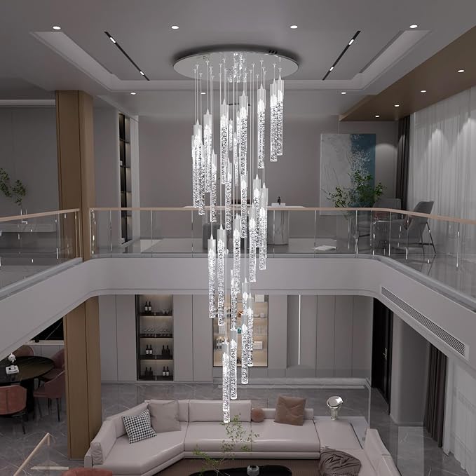 Flashing God High Ceiling Chandeliers Long Spiral Chandeliers for Entryway H144inch Modern Crystal Chandelier for Staircase Foyer Living Room Sloped Ceilings Light Fixture