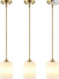 Modern Gold Pendant Light 3 Pack Brushed Brass Mid Century Chandelier White Cylinder Glass Shades Adjustable Rods Farmhouse Ceiling Hanging Lighting Fixture Kitchen Island Dining Room Bedroom