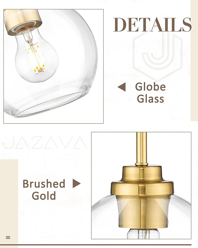 Modern Polished Gold Pendant Light, 7Inch Mid Cenrury Globe Hanging Light Fixture with Clear Glass for Kitchen Island Dining Room Bedroom Hallway Foyer (1 Pack), PL101BG