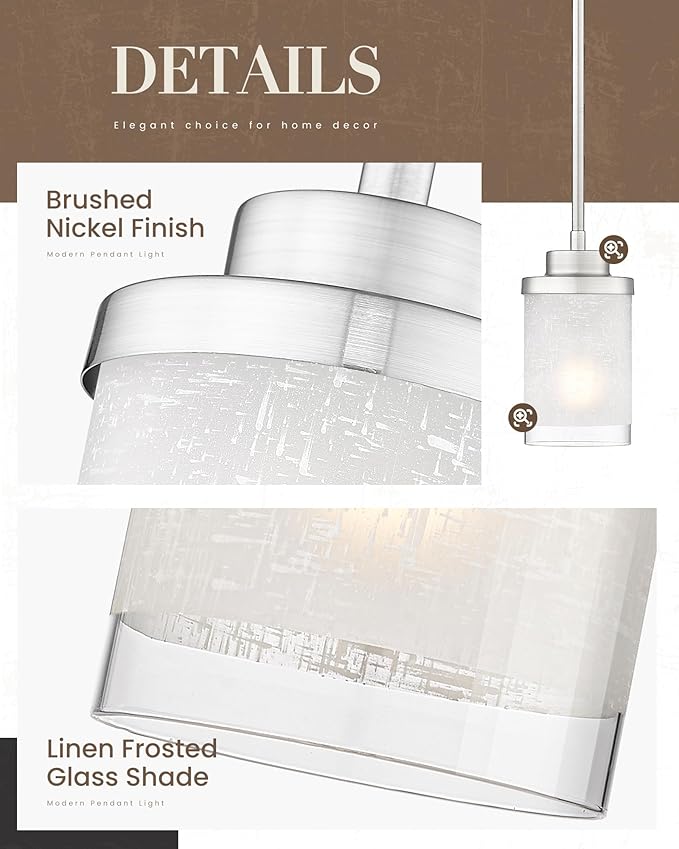 TENGXIN Modern Pendant Light for Kitchen Island, Brushed Nickel Hanging Ceiling Light Fixture,Farmhouse Pendant Lighting for Dining Room Bedroom Bar Office 2Pack,TXPLBN01-2PK