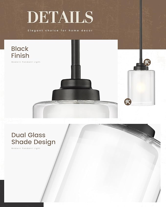 TENGXIN Modern Pendant Light, Matte Black Pendant Lights Kitchen Island,Farmhouse Pendant Lighting for Dining Room Bedroom Bar Office 2Pack,TXPLBK02-2PK