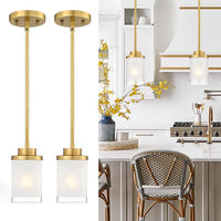 TENGXIN Modern Pendant Light for Kitchen Island, Brushed Gold Hanging Ceiling Light Fixture,Farmhouse Pendant Lighting for Dining Room Bedroom Bar Office 2Pack,TXPLBG01-2PK
