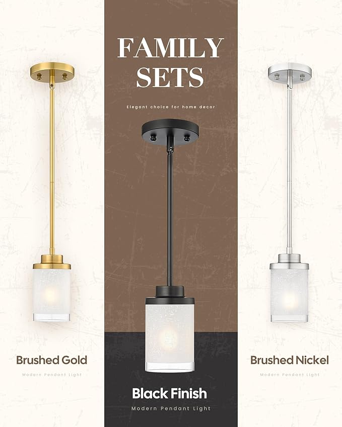 TENGXIN Modern Pendant Light, Matte Black Pendant Lights Kitchen Island,Farmhouse Pendant Lighting for Dining Room Bedroom Bar Office 2Pack,TXPLBK01-2PK
