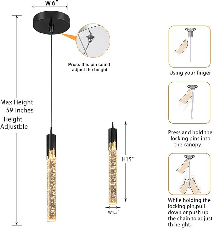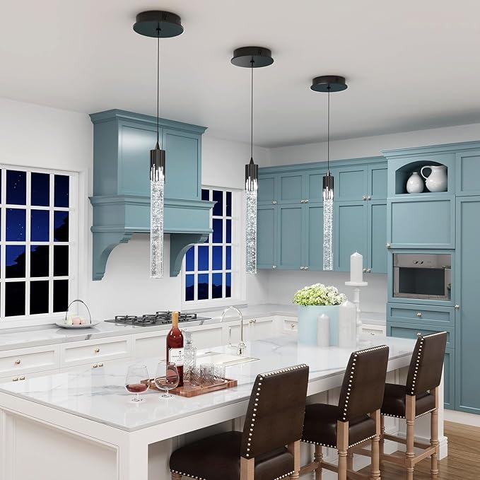 Flashing God Black Pendant Lights Modern LED Kitchen Island Light Crystal Mini Pendant Light with Dimmable LED Bubble Crystal Chandelier for Dining Room, Bedroom, Bar