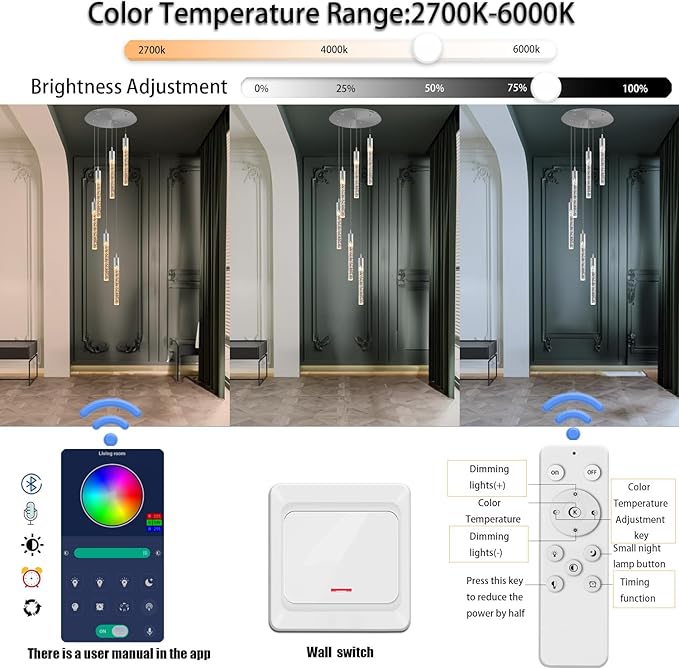 Flashing God Pendant Lights Kitchen Island 6-Lights Pendant Chandelier for Dining Room Hallway Stairwell,Modern Chrome Crystal Ceiling Light LED Dimmable 2700K-6000K