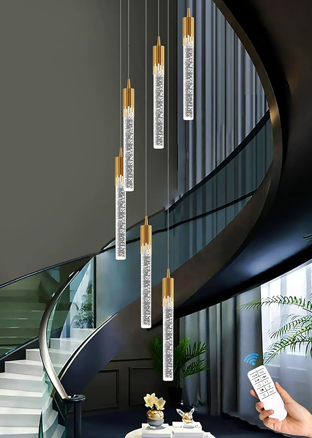 Flashing God 6-Lights Gold Modern Chandelier for High Ceiling Crystal Bubble Chandelier Light Fixture,Luxury Modern Pendant Light Fixture for Dining Room Dimmable with Remote