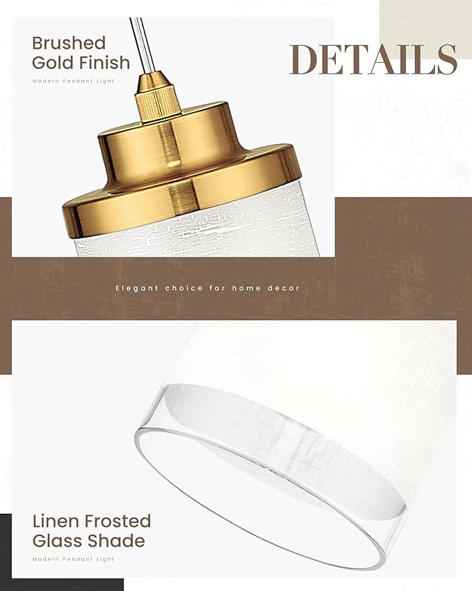 TENGXIN 3-Light Brushed Gold Pendant for Kitchen Island, Hanging Lamp Ceiling Fixture, Glass Light for Bedroom, Farmhouse Pendant for Dining Room
