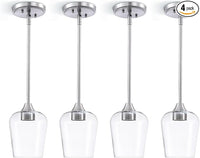 ASD Single Mini-Pendant Ceiling Light Fixture | 60W E26 Socket 120V | Dimmable, LED/CFL/Incandescent Bulbs Compatible, ETL Listed | Hanging Kitchen Island Lighting, Clear Drop Lamp | Nickel, 4 Pack