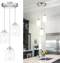 TENGXIN 3 Light Pendant Lights, Kitchen Island, Bedroom Modern Farmhouse Pendant with Dual Glass Shade, Brushed Nickel