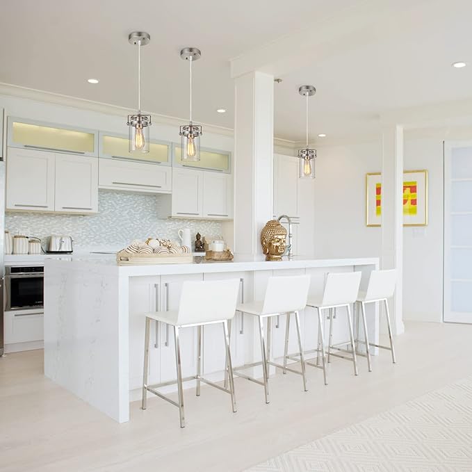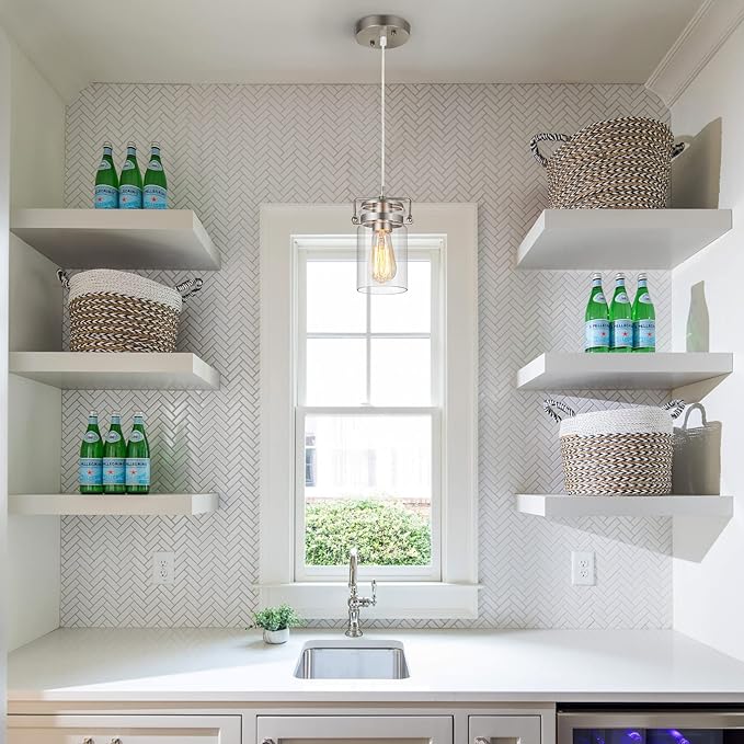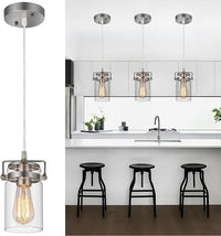 Industrial Pendant Lighting for Kithen Island, Brushed Nickel Pendant Light Fixture with Clear Glass Shade Modern Mini Ceiling Light Fixture Adjustable Kitchen Island Lighting(E26 Base)