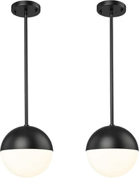 LMS 2 Pack Mid Century Pendant Lights, Matte Black Kitchen Island Light Fixtures with White Globe Glass Shade, Adjustable Hanging Rod Ceiling Light for Home Office Dining Room Bathroom, LMS-186BK2PK