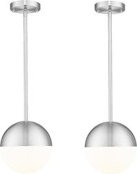 LMS 2 Pack Modern Pendant Lights, Mid Century Brushed Nickel Kitchen Lighting with White Globe Glass Shade, Adjustable Hanging Light Fixtures Ceiling Light for Home Office Dining Room, LMS-186BN2PK