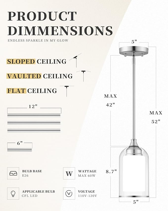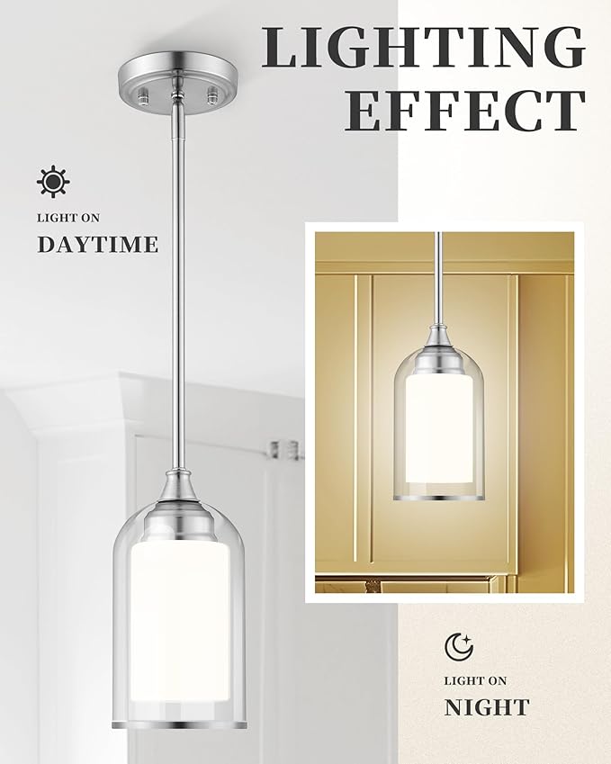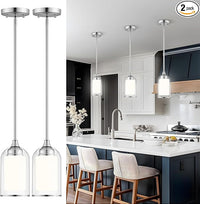 LIROUVET 2 Pack Pendant Light Fixtures, Modern Dual Glass Pendant Lights, Brushed Nickel Hanging Light with Clear and Milk Glass, Pendant Lights Kitchen Island for Dining Room PL02BN-2PK