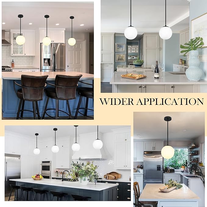 6 Inch Globe Pendant Light Black Mid Century Modern Globe Light Fixture Mid Century Milk Glass Pendant Lamp Matte Black Finished with Milk Glass Lampshade for Kitchen Island