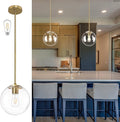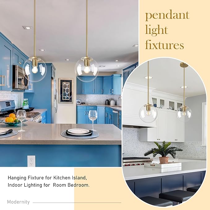 8" Globe Pendant Light Gold Mid Century Modern Light Fixture Clear Glass Pendant Lights Kitchen Island Modern Pendant Lights Brushed Brass Finished with Clear Glass Lampshade for Bedroom