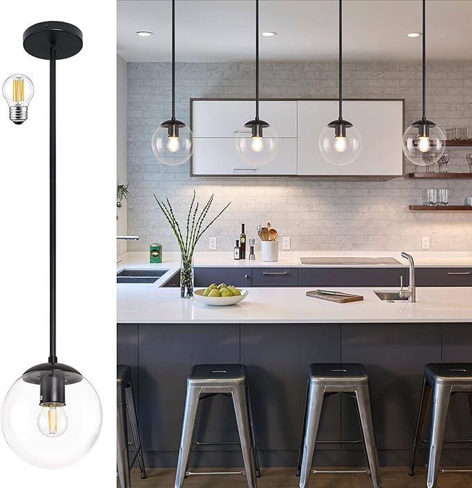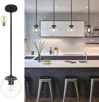 6 Inch Globe Pendant Light Black Mid Century Pendant Light Clear Glass Pendant Lights Kitchen Island Mid Century Adjustable Hanging Farmhouse Pendant Lights Fixtures for Kitchen Island