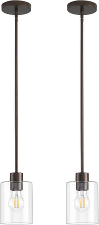 Oil Rubbed Bronze Pendant Lights Kitchen Island - Clear Glass Pendant Light Fixture Multiple Stems Rods 3 Units 12 Inch 3 Units 4 Inch (2 Pack Oil Rubbed Bronze Downrod)