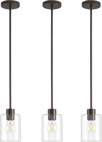 Oil Rubbed Bronze Pendant Lights Kitchen Island - Clear Glass Pendant Light Fixture Multiple Stems Rods 3 Units 12 Inch 3 Units 4 Inch (3 Pack Oil Rubbed Bronze Downrod)