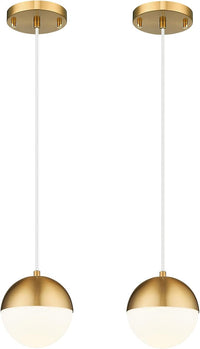LMS Mid Century Pendant Lights, Brushed Gold Kitchen Island Light Fixtures with White Globe Glass Shade, Adjustable Hanging Cord, 2-Pack for Home Office Dining Room Bathroom, LMS-186PL-BGWS2PK