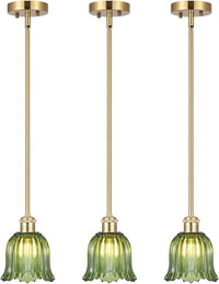 Modern Gold Pendant Light 3 Pack Brushed Brass Mid Century Chandelier Green Glass Shades Adjustable Rods Farmhouse Ceiling Hanging Lighting Fixture Kitchen Island Dining Room Bedroom
