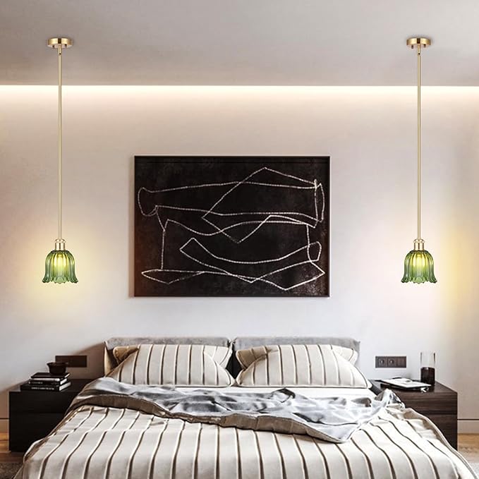 Modern Gold Pendant Light Brushed Brass Mid Century Chandelier Green Glass Shades Adjustable Rods Farmhouse Ceiling Hanging Lighting Fixture Kitchen Island Dining Room Bedroom