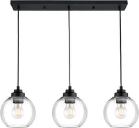 Black Island Light, 3-Light Linear Chandelier with Clear Glass, Globe Pendant Light Fixture for Dining Room Kitchen Island Living Room Pool Table, ZCPL101BK-3S